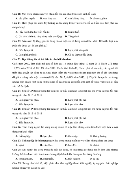 Câu 6: Trong nền kinh tế, khi mức độ tăng của giá cả ở hai con số trở lên hằng năm, gây bất ổn