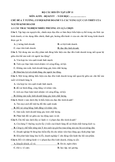 - Tailieugiaovien.com.vn giới thiệu Câu hỏi ôn tập + Đề kiểm tra KTPL 12 theo chủ đề (chung cho ba sách) Chủ đề 4: Ý tưởng kinh doanh và các năng lực cần thiết của người kinh doanh