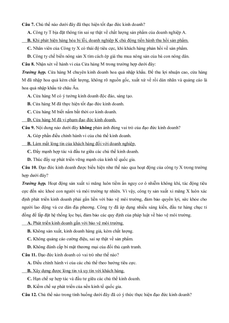 Câu 7. Chủ thể nào dưới đây đã thực hiện tốt đạo đức kinh doanh?