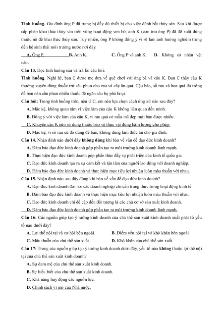 Câu 15. Nhận định nào sau đây đúng khi bàn về vấn đề đạo đức kinh doanh?
