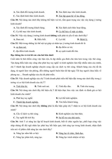 Câu 28: Việc xây dựng ý tưởng kinh doanh rất cần thiết, giúp người kinh doanh xác định được
