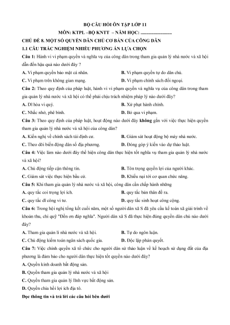 - Tailieugiaovien.com.vn giới thiệu Câu hỏi ôn tập + Đề kiểm tra KTPL 12 theo chủ đề (chung cho ba sách) Chủ đề 8: Một số quyền dân chủ cơ bản của công dân