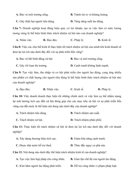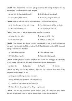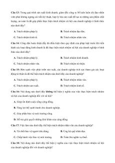 Câu 22: Trách nhiệm xã hội của doanh nghiệp là toàn bộ trách nhiệm bắt buộc và tự