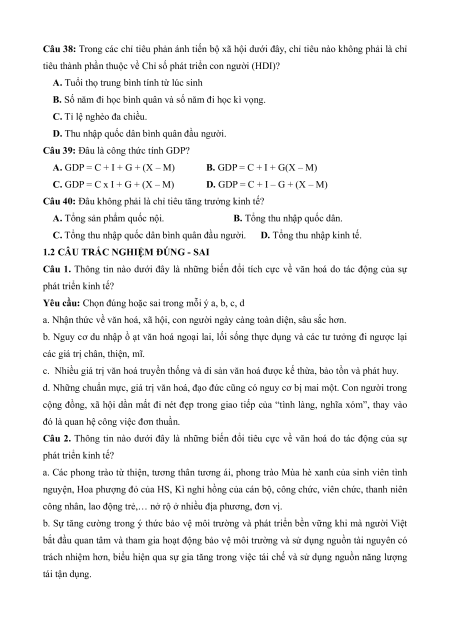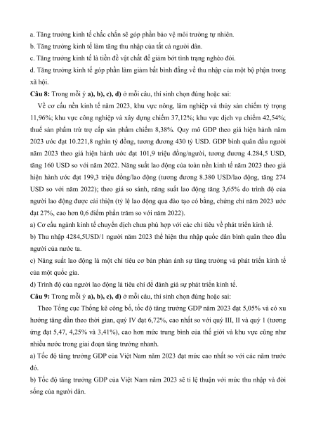 Câu 18: Đối với mỗi quốc gia, vai trò của tăng trưởng và phát triển kinh tế không thể hiện