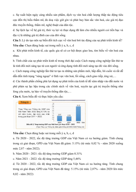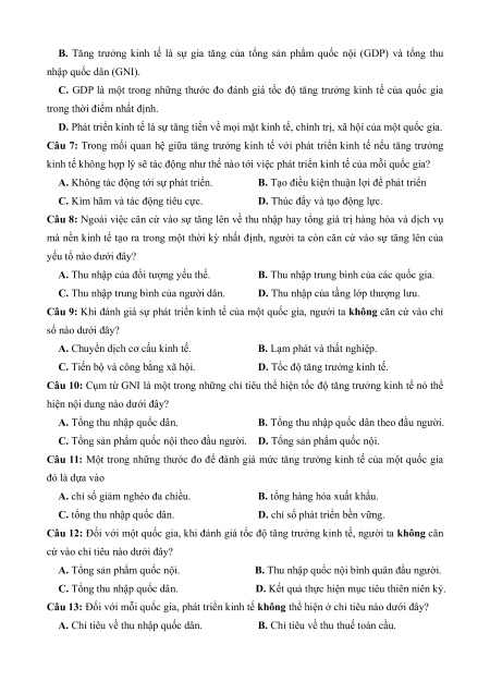 Câu 7: Trong mối quan hệ giữa tăng trưởng kinh tế với phát triển kinh tế nếu tăng trưởng