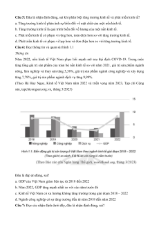 Câu 5: Trong mối quan hệ giữa tăng trưởng kinh tế với phát triển kinh tế thì tăng trưởng