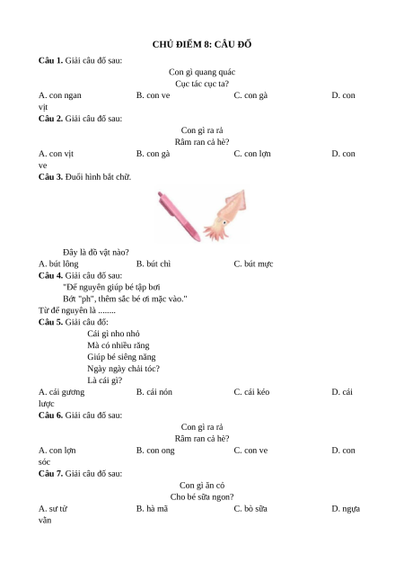 CHỦ ĐIỂM 8: CÂU ĐỐ