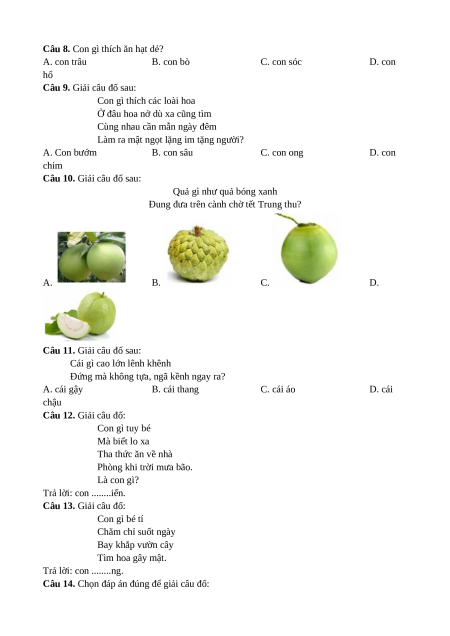 Câu 20. Giải câu đố sau: Quả gì xưa rụng bị bà