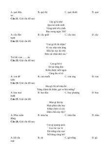 Câu 25. Giải câu đố: Mùa gì ấm áp Mưa phùn nhẹ bay Khắp chốn cỏ cây Đâm chồi nảy lộc? A. Mùa xuân B. mùa hạ C. mùa thu D. mùa đông