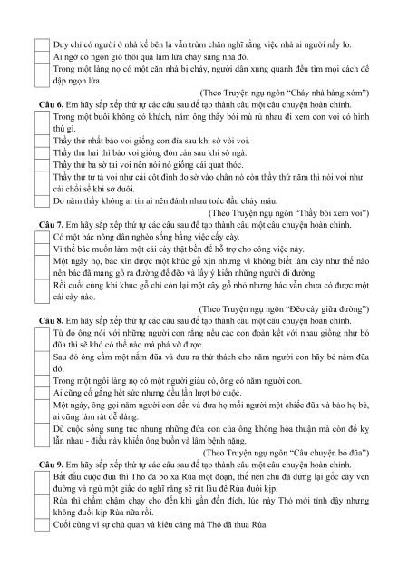 Câu 9. Em hãy sắp xếp thứ tự các câu sau đế tạo thành câu một câu chuyện hoàn chỉnh.