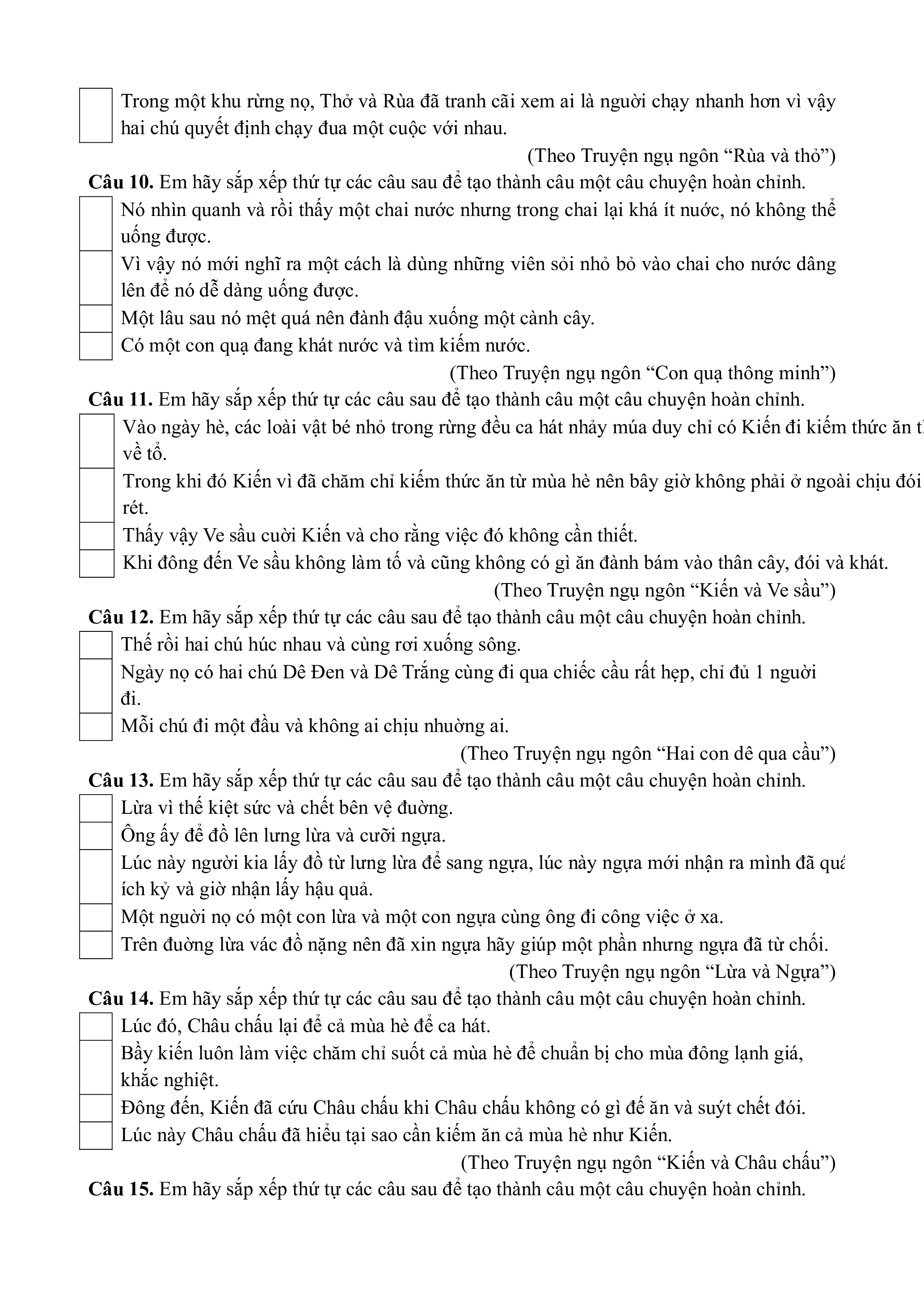 Câu 15. Em hãy sắp xếp thứ tự các câu sau để tạo thành câu một câu chuyện hoàn chỉnh.