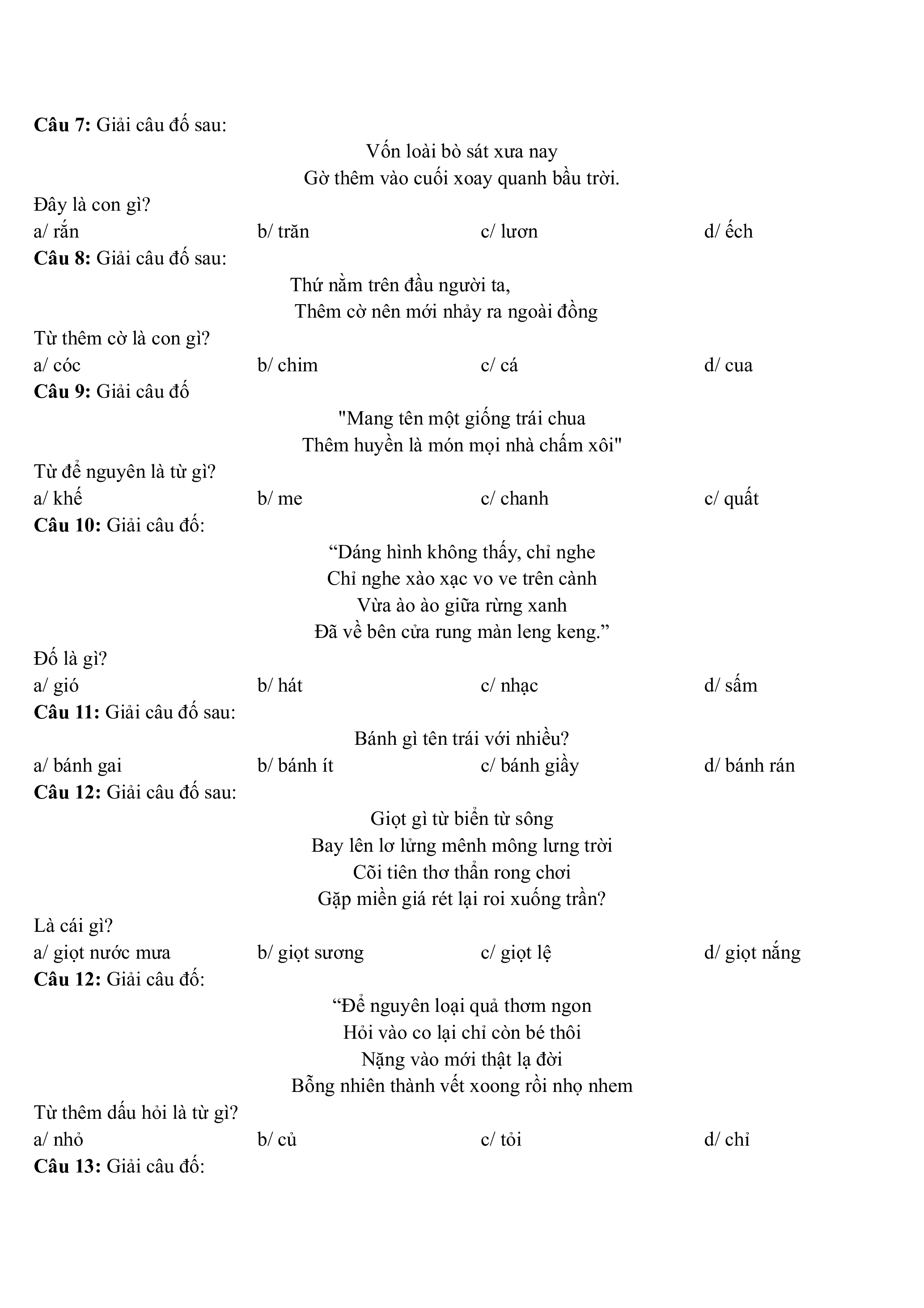 CHỦ ĐIỂM 12: GIẢI CÂU ĐỐ