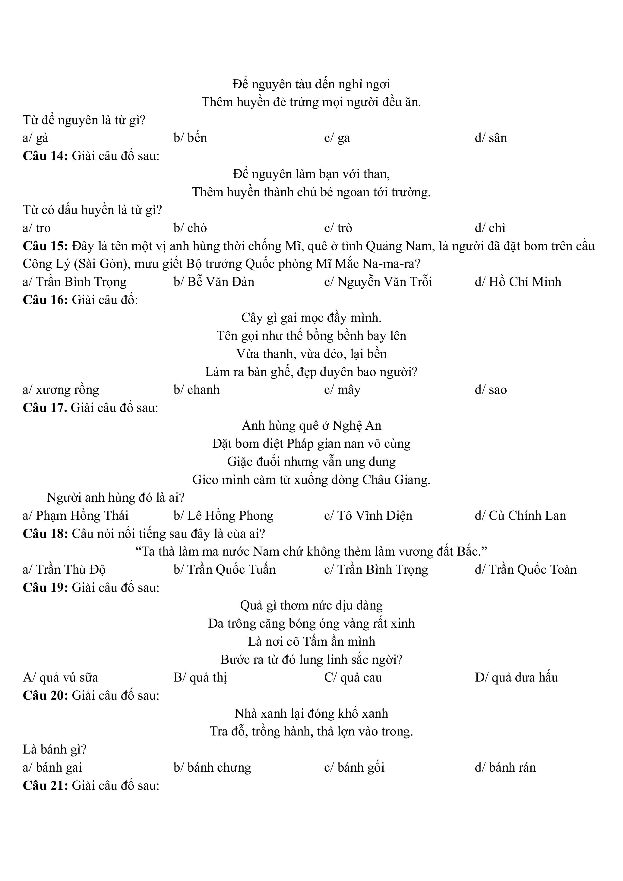 - Tailieugiaovien.com.vn giới thiệu Bộ 1000 câu hỏi ôn thi Trạng Nguyên Tiếng Việt lớp 3 có đáp án với các câu hỏi đa dạng. 13 Chủ điểm giúp học sinh ôn thi Trạng Nguyên Tiếng Việt đạt kiết quả cao.