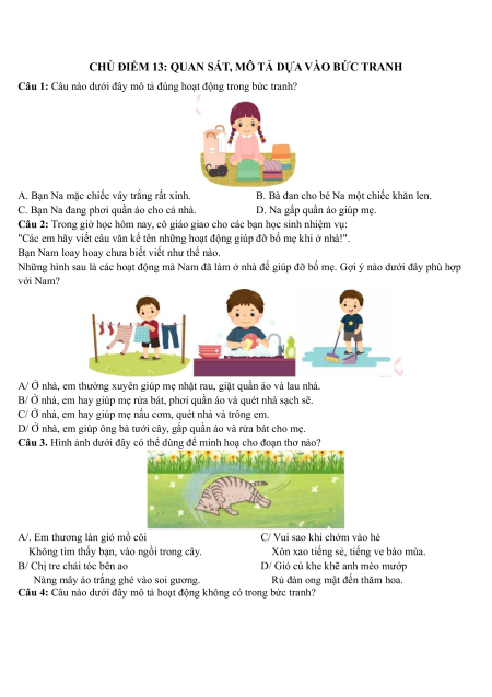 CHỦ ĐIỂM 13: QUAN SÁT, MÔ TẢ DỰA VÀO BỨC TRANH