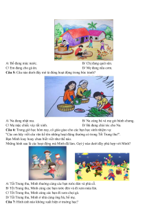 Câu 4: Câu nào dưới đây mô tả hoạt động không có trong bức tranh? A/ Bố đang múc nước. B/ Chị đang quét sân.