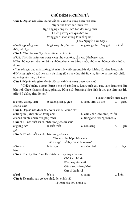 Câu 8: Đoạn thơ sau có bao nhiêu lỗi chính tả?
