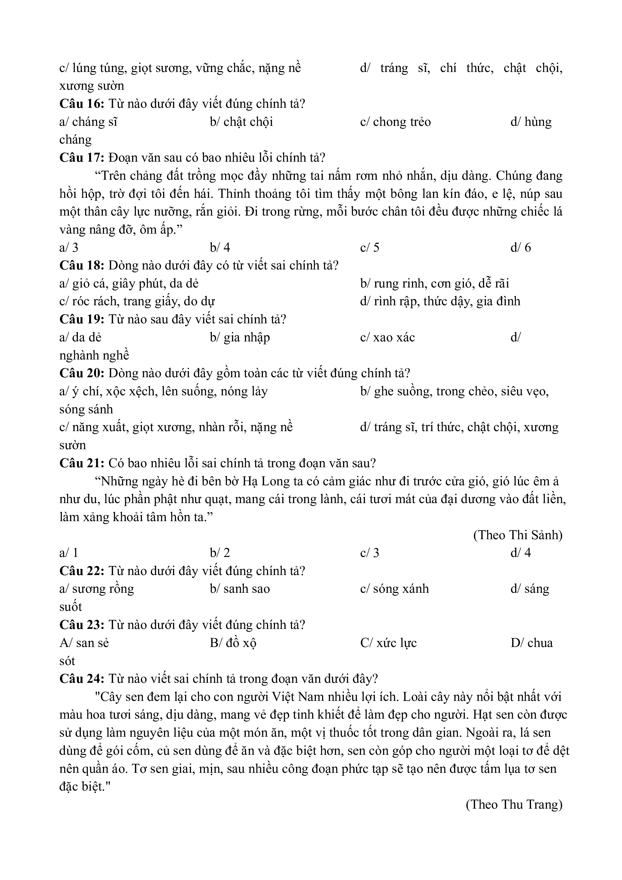 Câu 21: Có bao nhiêu lỗi sai chính tả trong đoạn văn sau?