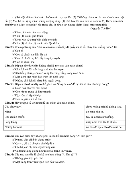 Câu 14: Câu nào dưới đây là câu nêu hoạt động?