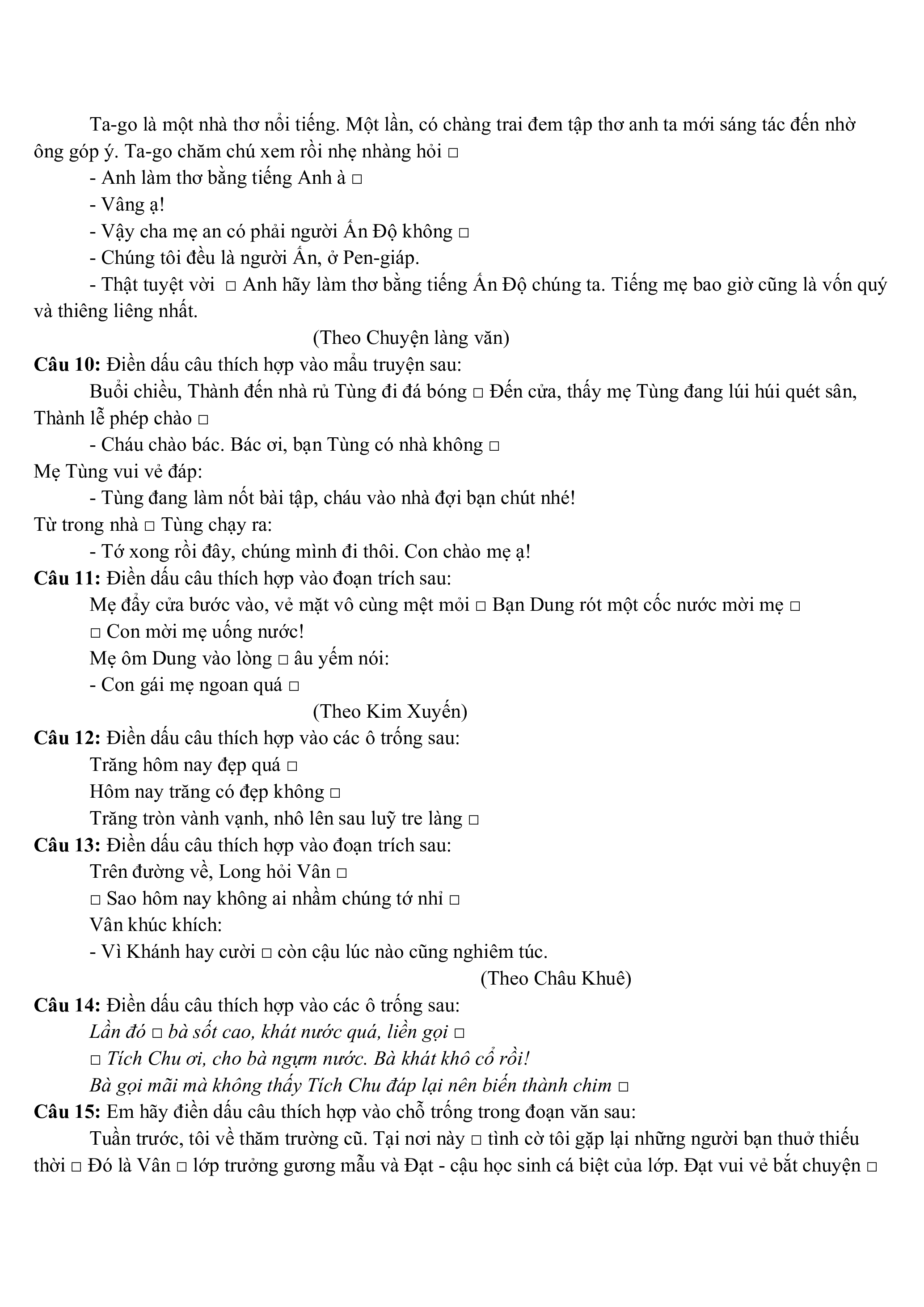 Câu 11: Điền dấu câu thích hợp vào đoạn trích sau: