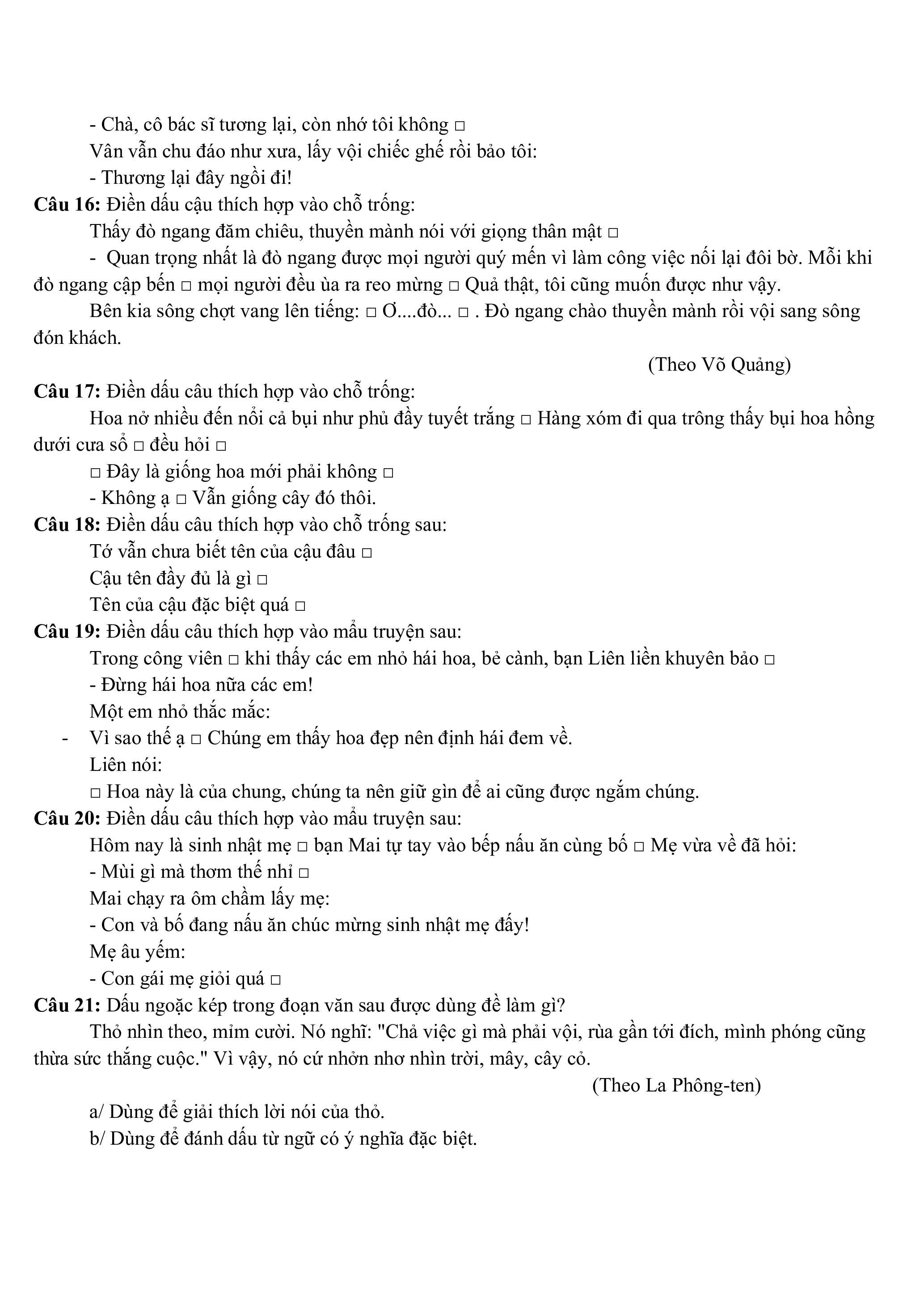 Câu 17: Điền dấu câu thích hợp vào chỗ trống:
