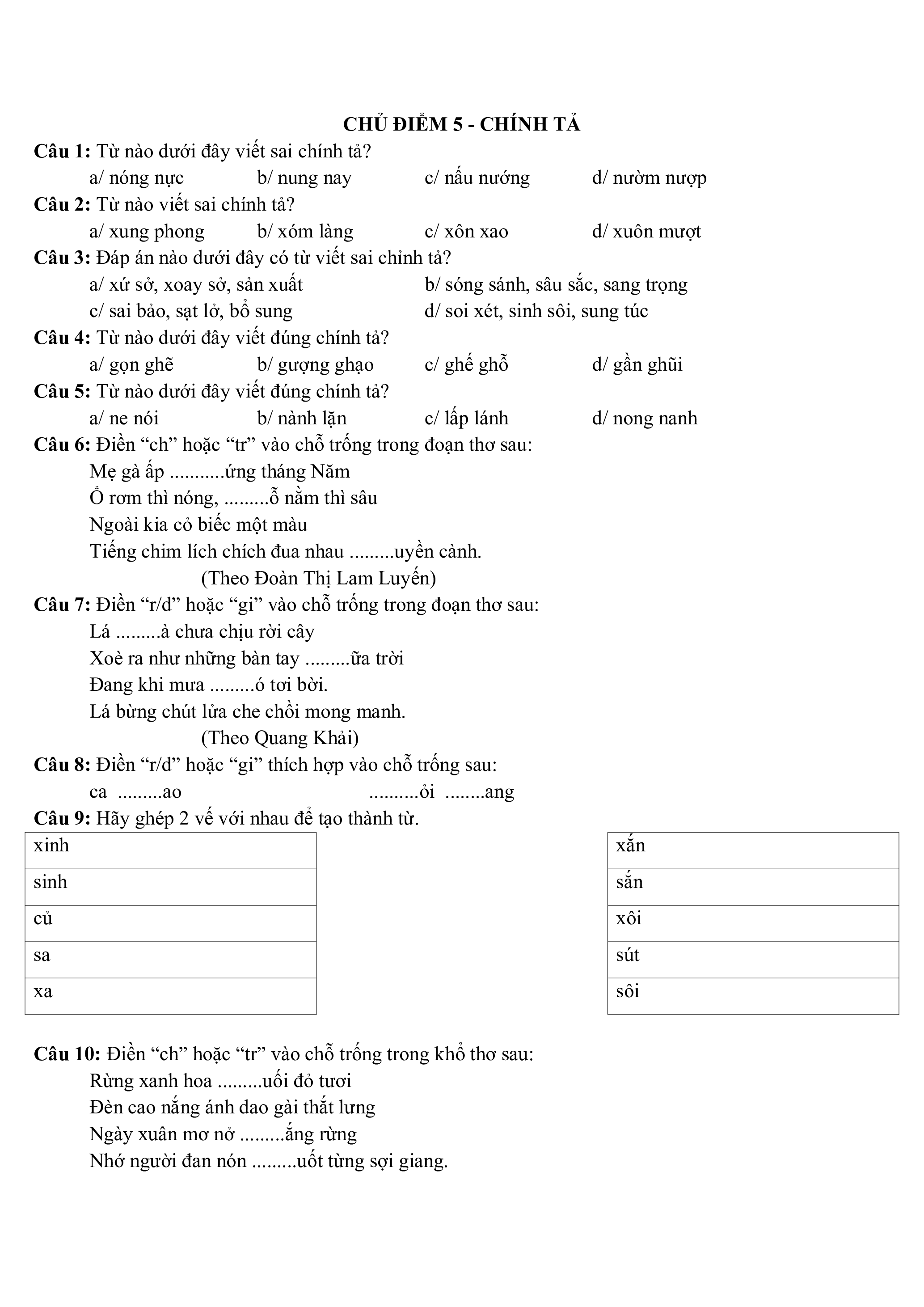 CHỦ ĐIỂM 5 - CHÍNH TẢ