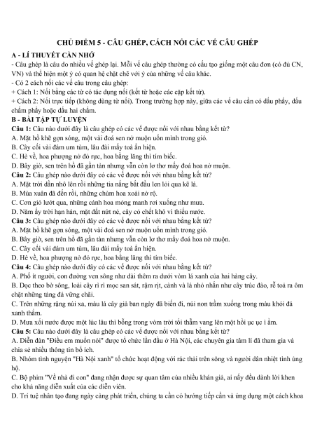 CHỦ ĐIỂM 5 - CÂU GHÉP, CÁCH NỐI CÁC VẾ CÂU GHÉP