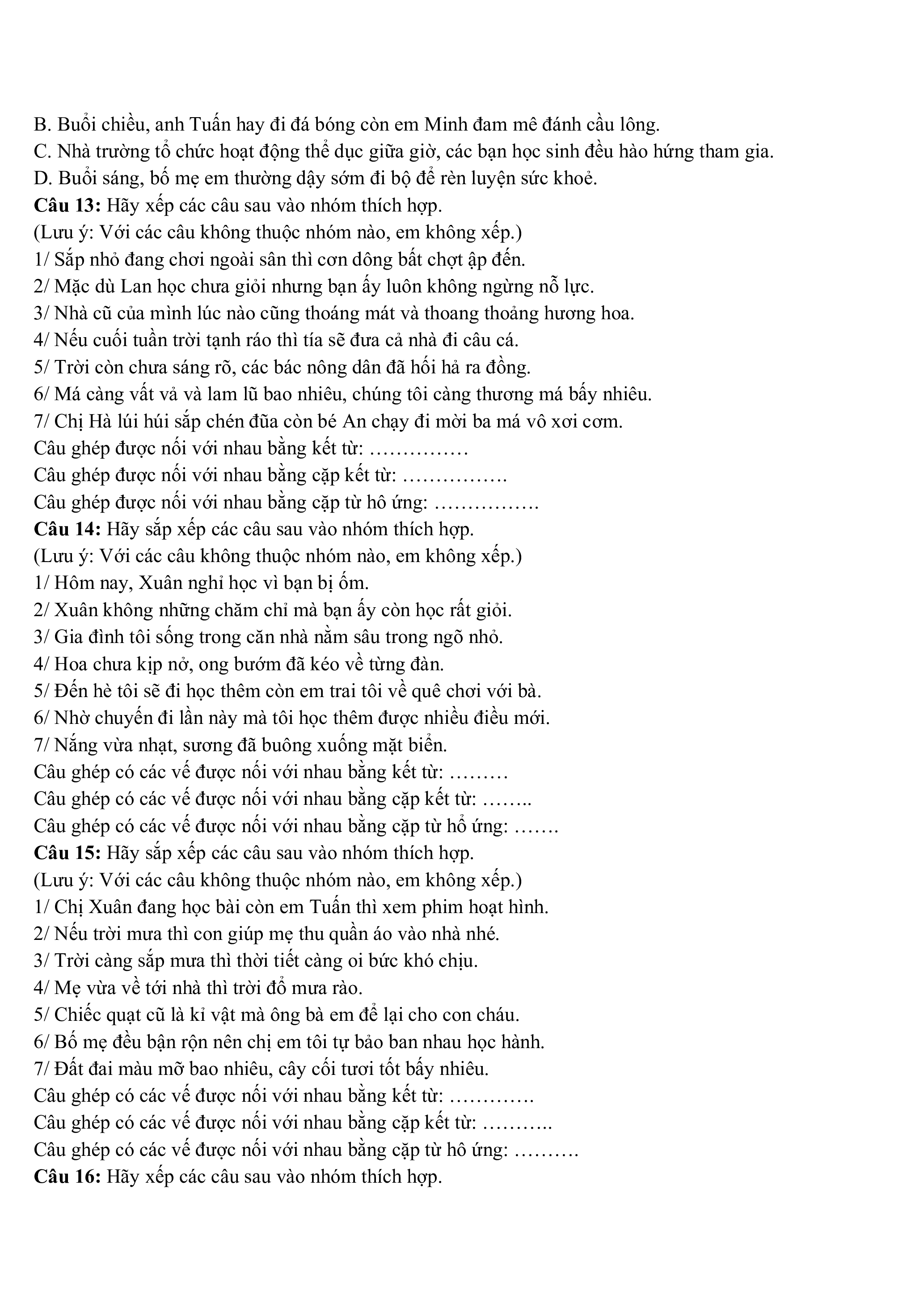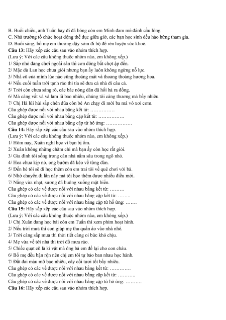 Câu 13: Hãy xếp các câu sau vào nhóm thích hợp.