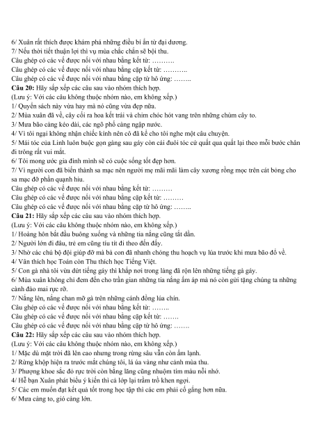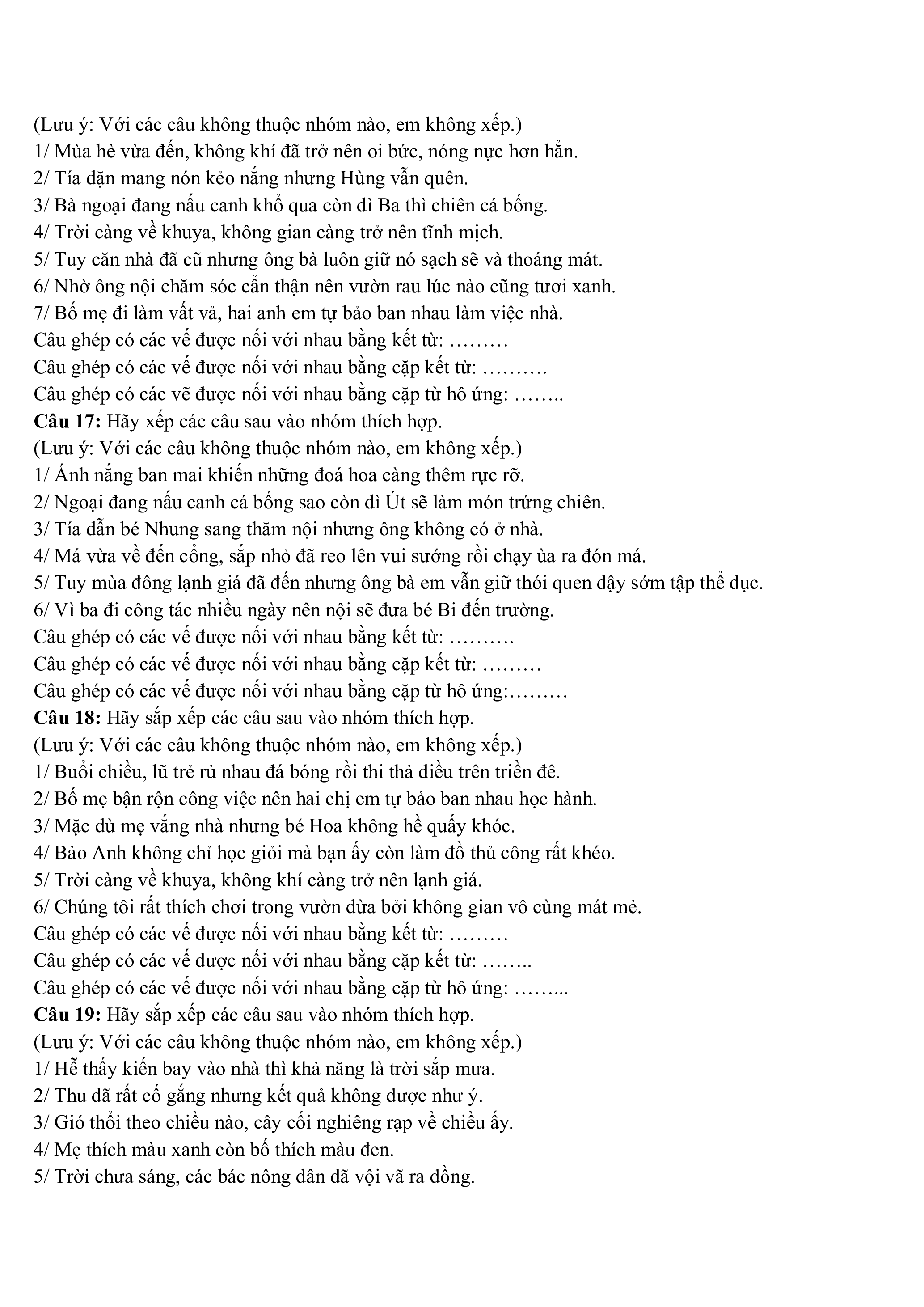 Câu 17: Hãy xếp các câu sau vào nhóm thích hợp.