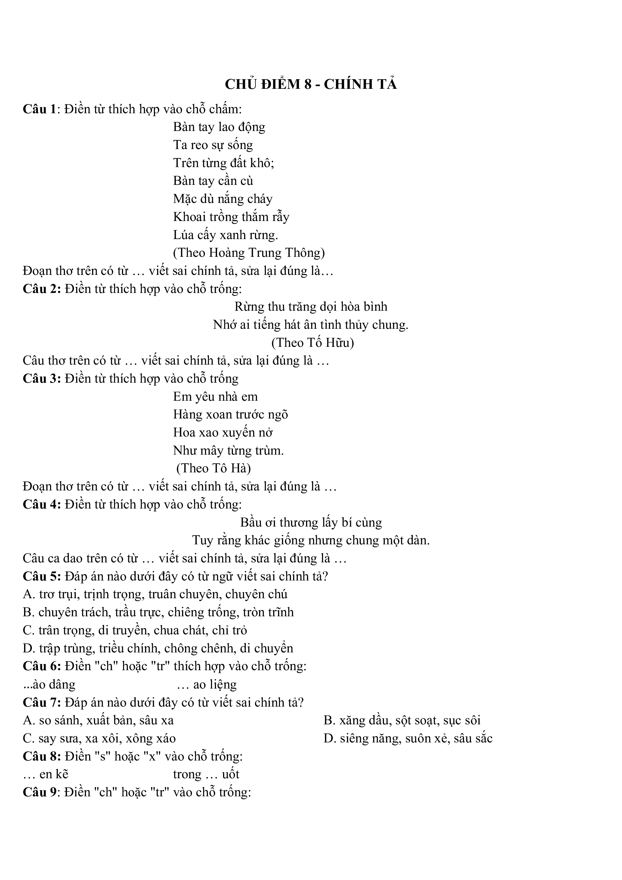 CHỦ ĐIỂM 8 - CHÍNH TẢ
