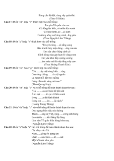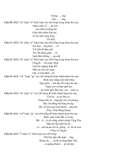 Câu 20: Điền "ch" hoặc "tr" vào chỗ trống để hoàn thành đoạn thơ sau: