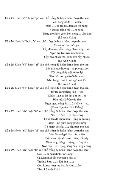 Câu 23: Điền "r/d" hoặc "gi" vào chỗ trống để hoàn thành đoạn thơ sau: