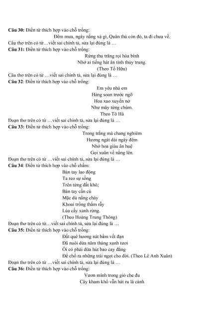 Câu 29: Điền "ch" hoặc "tr" vào chỗ trống để hoàn thành đoạn thơ sau: