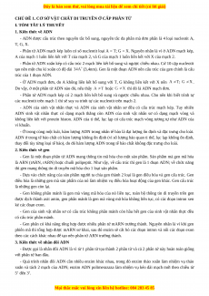 CHỦ ĐỀ 1. CƠ SỞ VẬT CHẤT DI TRUYỀN Ở CẤP PHÂN TỬ I. TÓM TẮT LÝ THUYẾT 1. Kiến thức về ADN