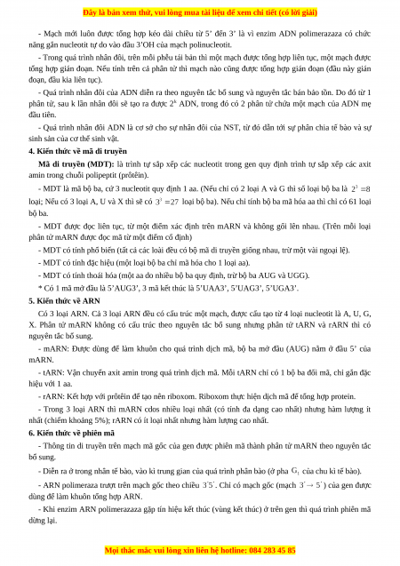 - MDT là mã bộ ba, cứ 3 nucleotit quy định 1 aa. (Nếu chỉ có 2 loại A và G thì số loại bộ ba là