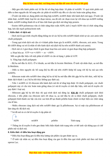 - Trên 1 mARN có 10 riboxom tiến hành dịch mã thì sẽ tổng hợp được 10 chuỗi polipeptit, các chuỗi