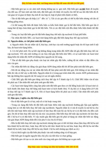 - Đột biến điểm là loại đột biến chỉ liên quan tới 1 cặp nucleotit. (Có 3 dạng đột biến điểm là: Mất,