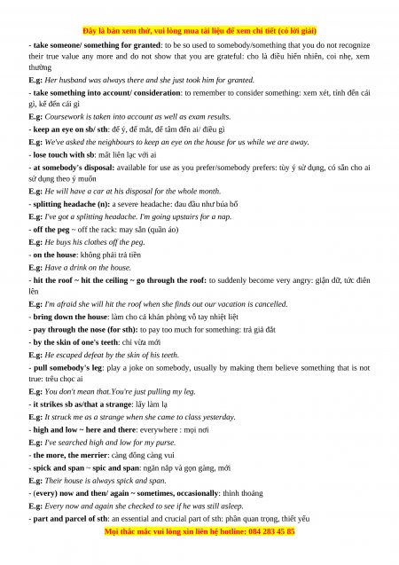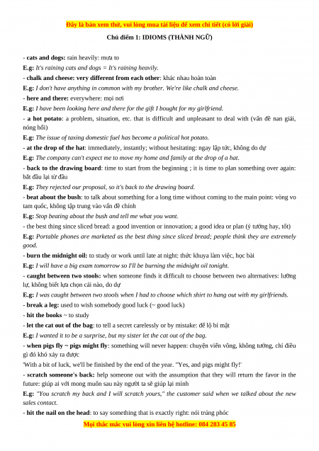 Chủ điểm 1: IDIOMS (THÀNH NGỮ)