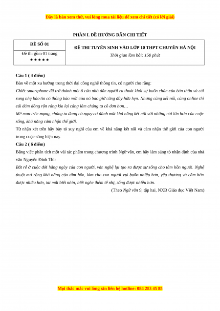 ĐỀ THI TUYỂN SINH VÀO LỚP 10 THPT CHUYÊN HÀ NỘI Đề thi gồm 01 trang