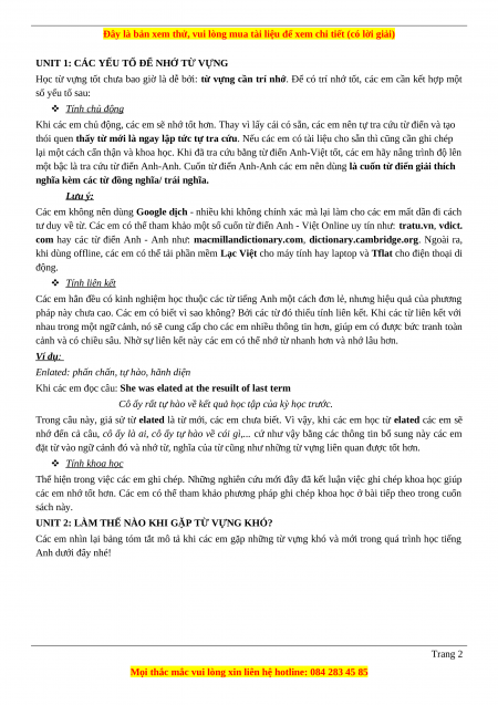UNIT 1: CÁC YẾU TỐ ĐỂ NHỚ TỪ VỰNG