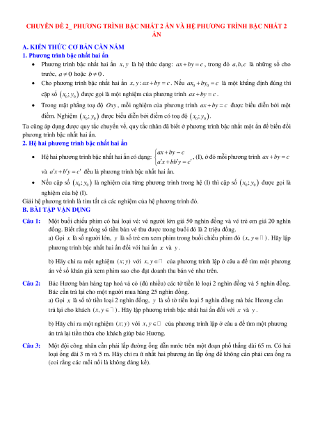 CHUYÊN ĐỀ 2_ PHƯƠNG TRÌNH BẬC NHẤT 2 ẨN VÀ HỆ PHƯƠNG TRÌNH BẬC NHẤT 2 ẨN