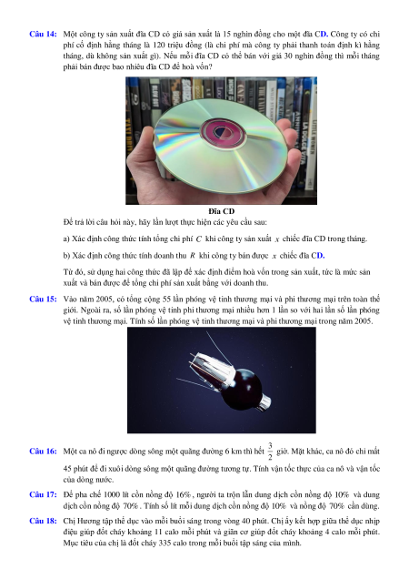 Câu 14: Một công ty sản xuất đĩa CD có giá sản xuất là 15 nghìn đồng cho một đĩa CD. Công ty có chi