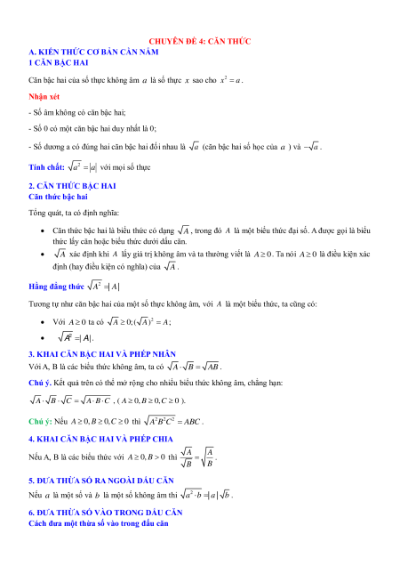 Chuyên đề 4. Căn thức
