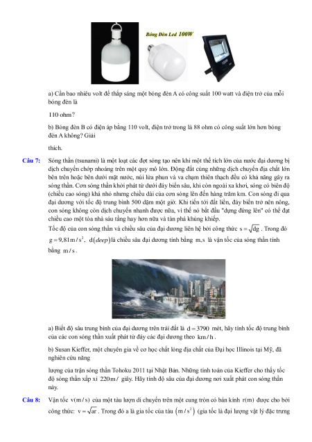 Câu 7: Sóng thần (tsunami) là một loạt các đợt sóng tạo nên khi một thể tích lớn của nước đại dương bị