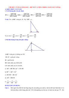 CHỦ ĐỀ 5. TỈ SỐ LƯỢNG GIÁC - HỆ THỨC LƯỢNG TRONG TAM GIÁC VUÔNG