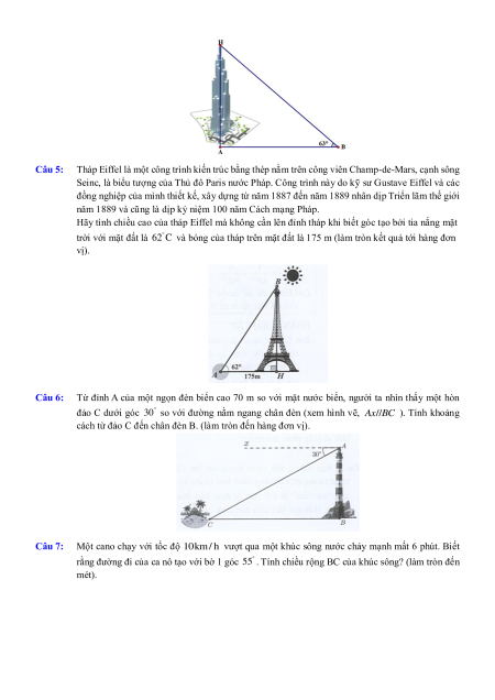 trời với mặt đất là 62C và bóng của tháp trên mặt đất là 175 m (làm tròn kết quả tới hàng đơn vị).