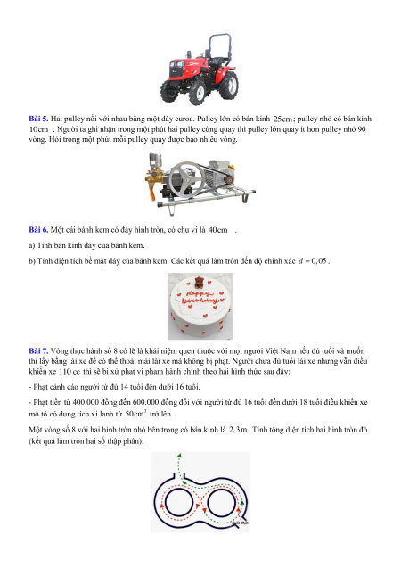 Lưu ý: Quãng đường đi của một bánh xe hình tròn bằng chu vi đường tròn nhân số vòng quay của bánh xe. B. BÀI TẬP