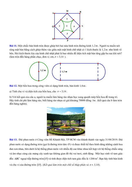 Bài 12. Một bồn hoa trong công viên có dạng hình tròn, bán kính 1,6 m .
