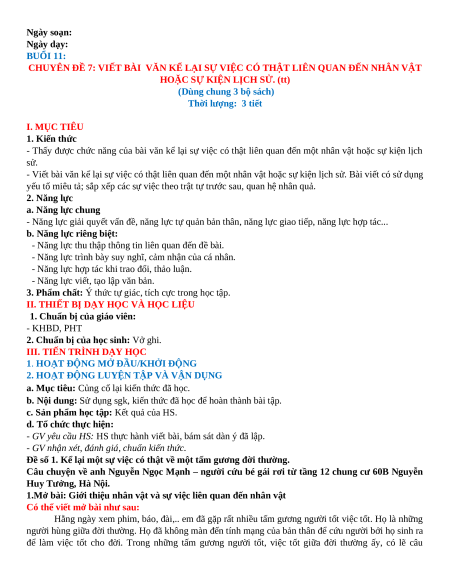 Chuyên đề 7. Viết bài văn kể lại sự việc có thật liên quan đến nhân vật hoặc sự kiện lịch sử