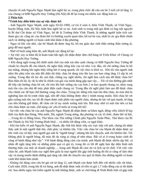Câu chuyện về anh Nguyễn Ngọc Mạnh – người cứu bé gái rơi từ tầng 12 chung cư 60B Nguyễn Huy Tưởng, Hà Nội.