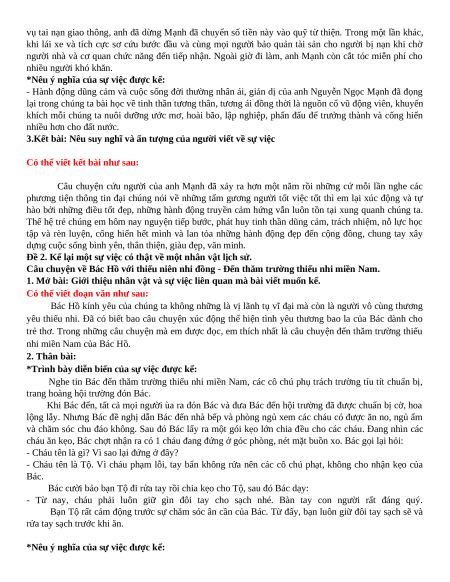 Đề 2. Kể lại một sự việc có thật về một nhân vật lịch sử.